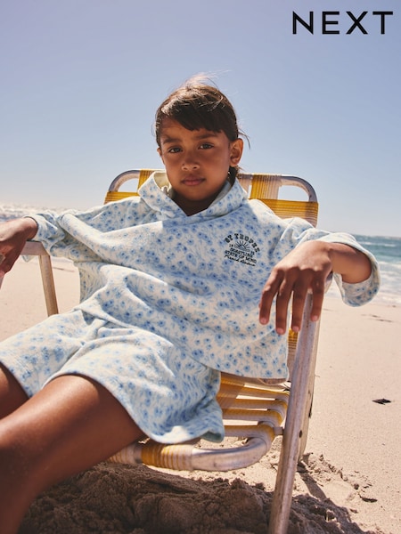 Blue/White Floral Ditsy Towelling Hoodie And Shorts Set (12mths-16yrs)