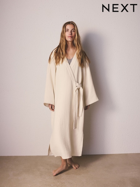 Ecru Waffle Side Tie Lightweight Dressing Gown