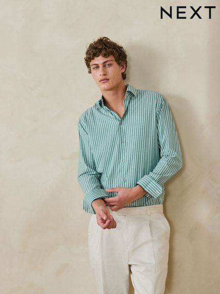 Bande verte - Chemise habillée extensible à manches longues en coton