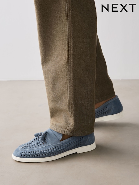 Bleu - Mocassins à pampilles en daim tressé