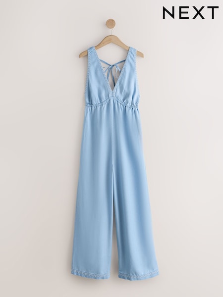 Bleu - Tencel V Neck Wide Leg Jumpsuit