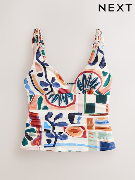 Crème à imprimé fleuri haute brillance - Haut de tankini gainant dos nu à volants