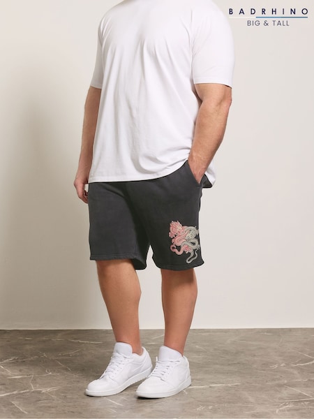 BadRhino Big & Tall Black Japanese Printed Sweat Shorts