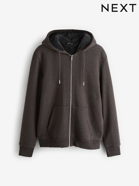 Threadbare Brown Borg Lined Zip-Through Hoodie