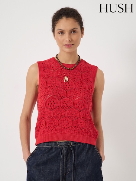Omnes Red Matilda 100% Cotton Cable Knit Vest