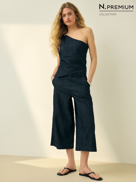 Indigo Blue N. Premium Wide Leg Linen Blend Tailored Jeans