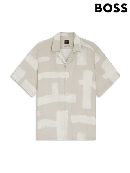 灰色 - BOSS Regular Fit Short Sleeve Linen Shirt
