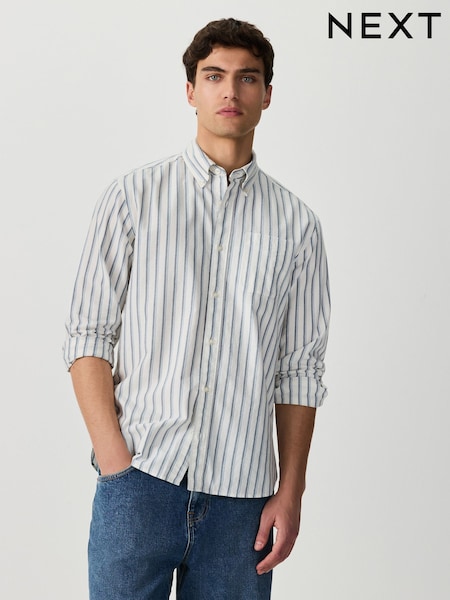 蓝色 - 条纹牛津布长袖衬衫