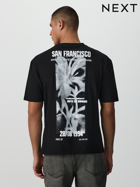黑色科技舞曲 - 宽松版型 - 印花重磅T恤