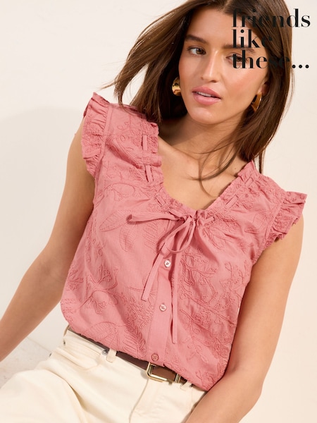 粉红色 - Friends Like These 刺绣纹理女式衬衫