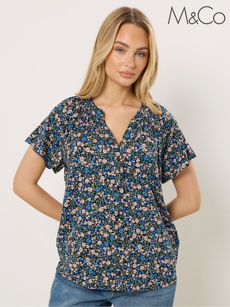 蓝色 - M&Co Short Sleeve Notch Neck Shirt