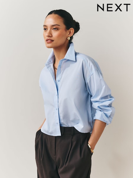 蓝色 - Cropped Oversized Boyfriend Shirt