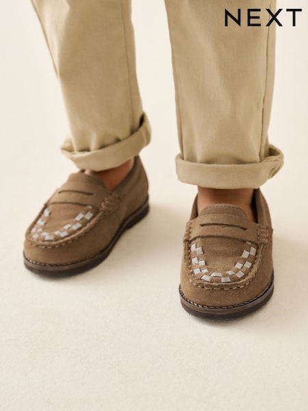 Tan Brown Standard Fit (F) Touch Fastening Woven Suede Loafers
