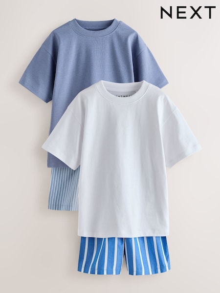 Blue/White Stripe Woven Short Pyjamas 2 Pack (3-16yrs)