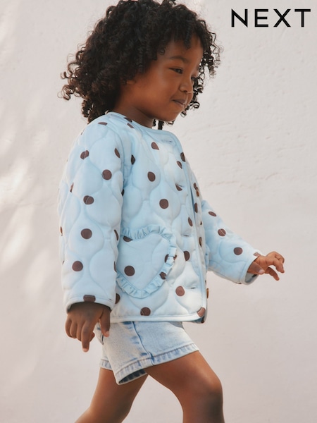 Blue Polka Dot Printed Quilted Jacket (3mths-7yrs)
