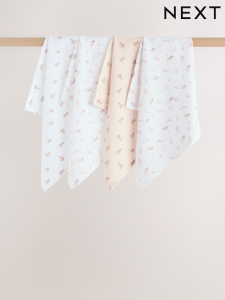 White Delicate Animal Baby Muslins Cloths 4 Pack