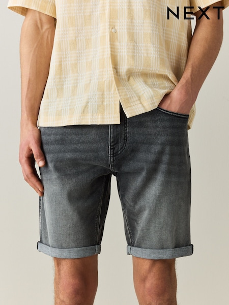 Grey Straight Fit Stretch Denim Shorts