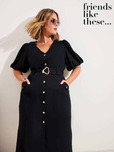 Friends Like These Black Curve Button Through Belted Midi Dress