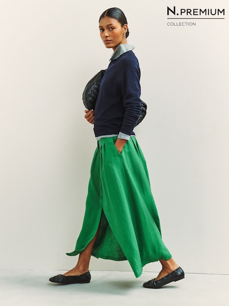 Green N. Premium 100% Linen Midi Skirt