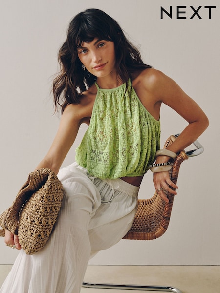 Green Stripe Knitlook Sleeveless Halter Neck Top