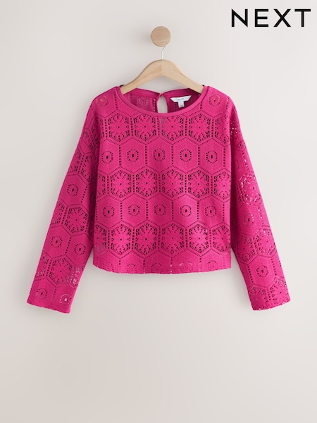 Pink Fluro Short Sleeve Crochet Crew Neck T-Shirt