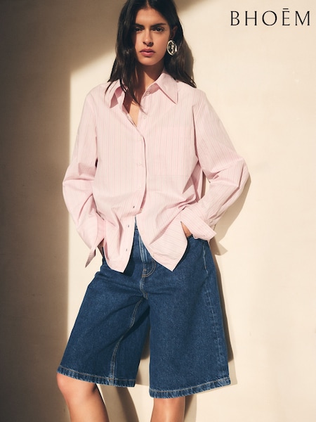 BHOEM Pink Regular Fit Stripes Poplin Shirt