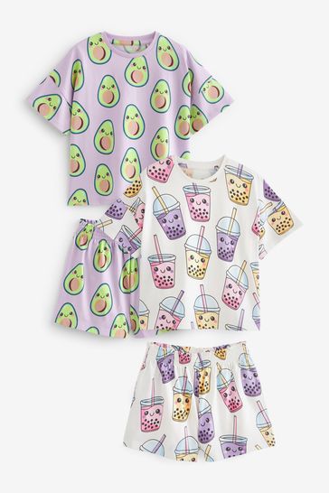 Lilac Purple/Cream Avocado/Bubble Tea Character 2 Pack Short Pyjamas (3-16yrs)