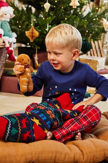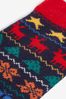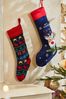 Our patterned knitted stocking is an adorable Christmas stocking that will look beautiful when hung on the mantelpiece. The Fair Isle-inspired design boasts a dark blue background, with multicoloured stars, reindeer, trees, wrapping bows, and presents, all finished off with dark red stitching. The classic design means kids of any age will enjoy receiving presents in their trendy Christmas stockings. Personalise me with your chosen name, search ref N32426. 49 x 18.5cm. 70% Acrylic, 30% Wool, 100% Recycled Polyester fleece. Hand wash only.