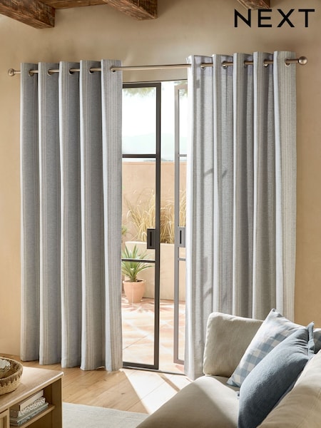 Blue Woven Stripe Eyelet Lined Curtains