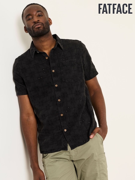 FatFace Washed Black Short Sleeve Broderie Geometric Pattern Shirt