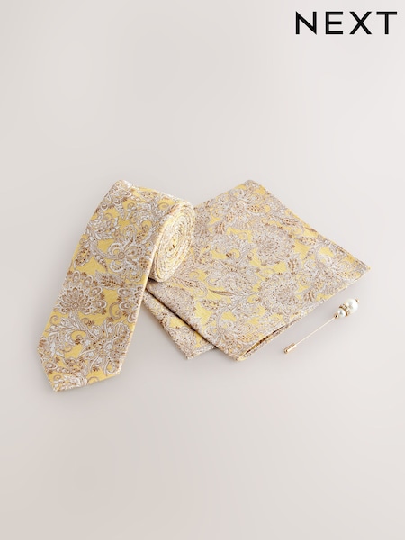 Skopes Yellow Paisley Silk Tie and Pocket Square Set