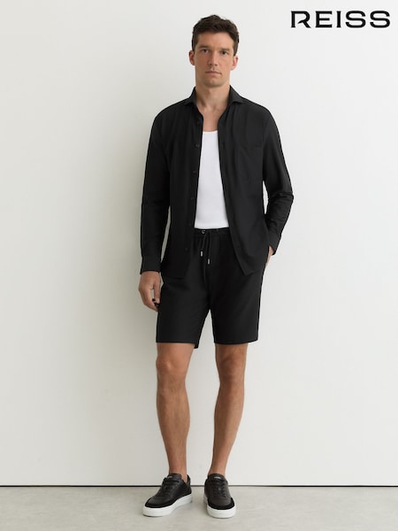 Reiss Black Ajay Seersucker Drawstring Shorts