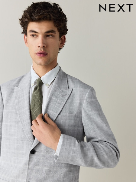 Grey Relaxed Fit Seersucker Check Suit Jacket