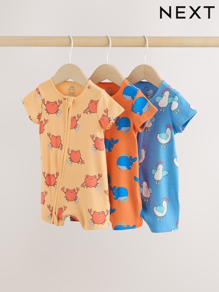 Blue/Yellow Two Way Zip Baby Rompers 3 Pack (0mths-3yrs)