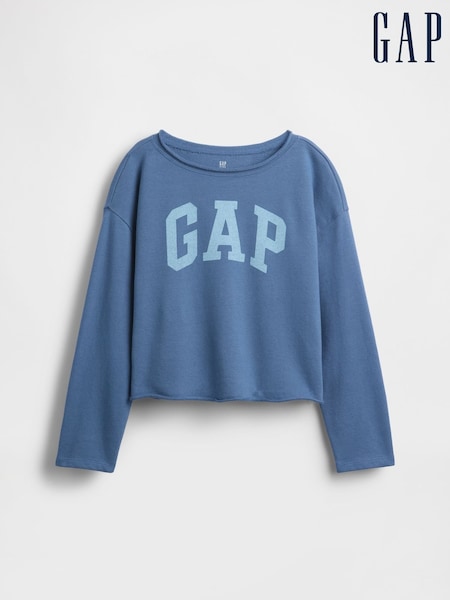 Gap Blue French Terry Wide-Neck Logo Sweatshirt (4-13yrs)