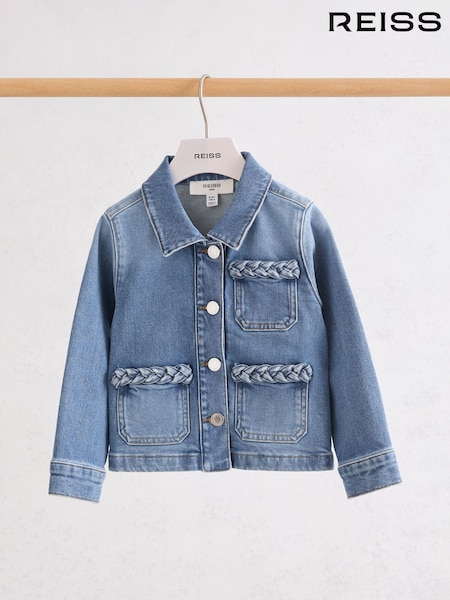Reiss Denim Blue Ariel 3-9 yrs Plaited-Trim Denim Jacket