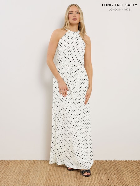 Long Tall Sally White Spot Halter Neck Maxi Dress