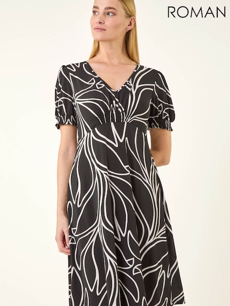 Roman White Textured Stripe Button Detail Midi 100% Cotton Dress