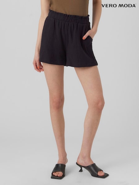 VERO MODA Black Textured Pull On Cotton Blend Shorts