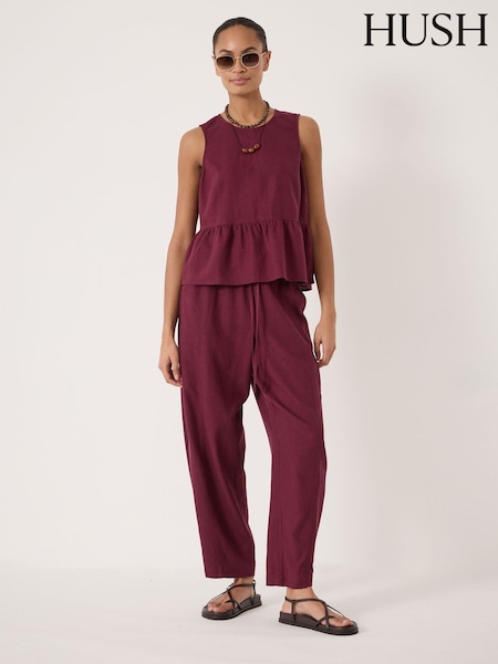 Hush Red Tovi Linen Blend Barrel Leg Trousers