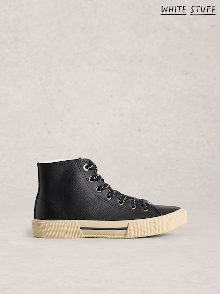 White Stuff Black Pippa Leather Hi-Top Trainers