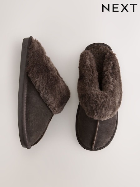 Chocolate Brown Faux Fur Lined Suede Mule Slippers
