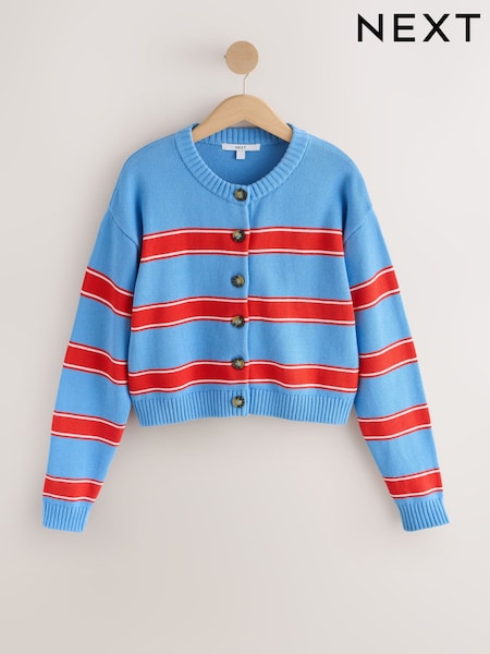 Blue/Red Stripe Cotton Crew Neck Cardigan