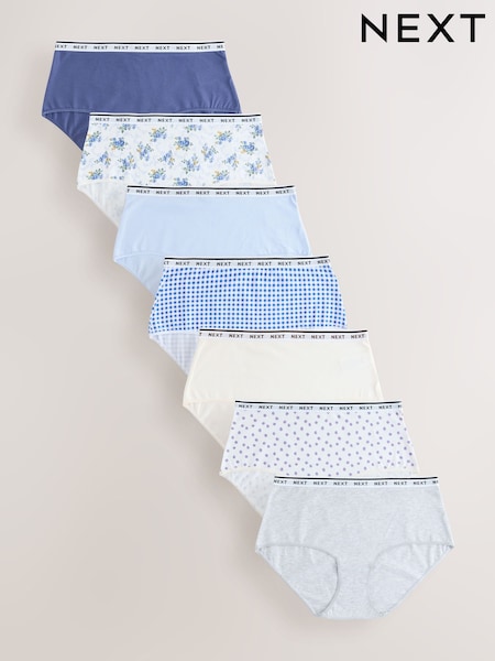Blue/White Midi Cotton Logo Knickers 7 Pack