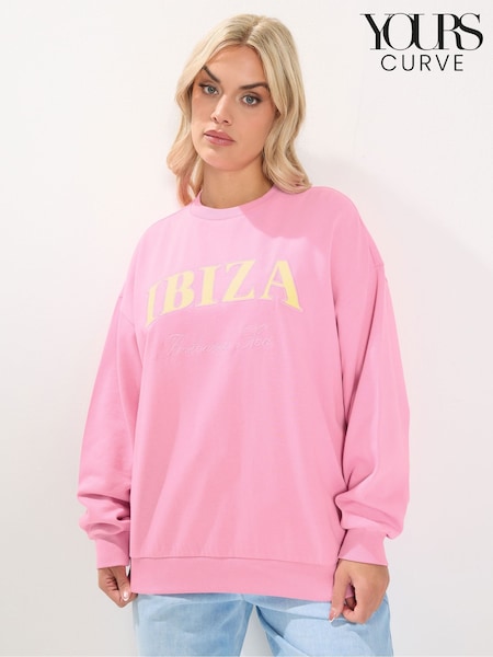 Yours Curve Pink Ibiza Applique Sweatshirt