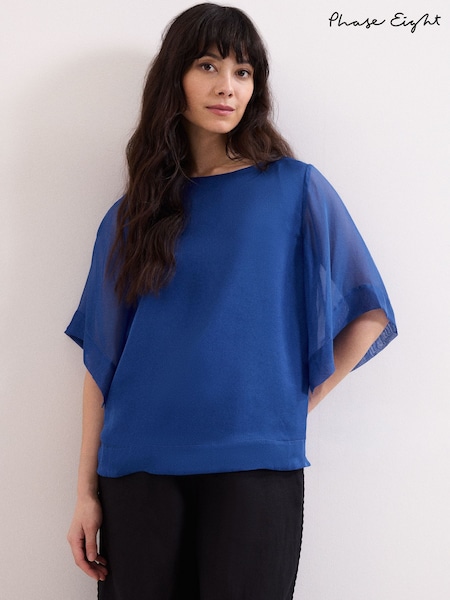 Love & Roses Navy Pink and Sparkly Petite Satin Front V-Neck Short Sleeve Top