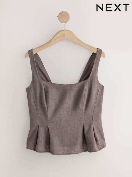 Chocolate Brown Structured Peplum Top with Linen