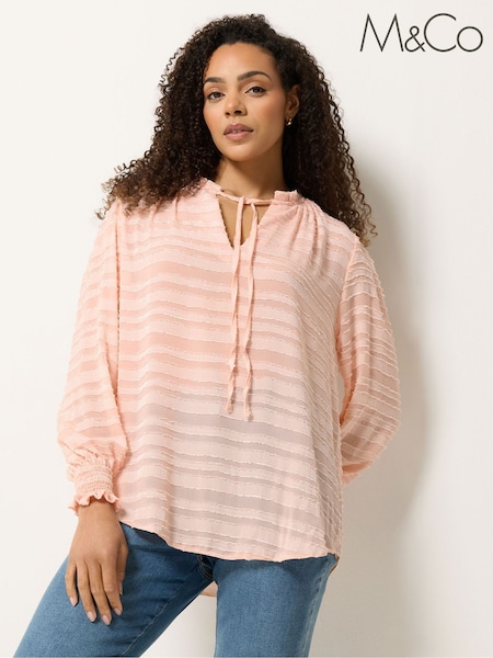 M&Co Pink Petite Long Sleeve Boho Blouse