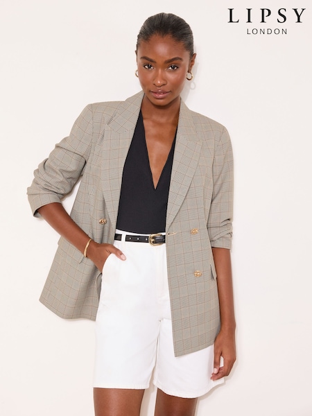 Lipsy Faux Leather Neutral Whipstitch Detail Collarless Jacket