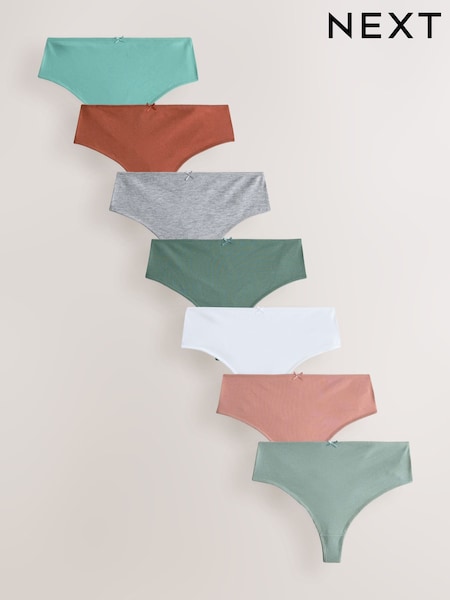 Green/Blue High Waisted Thong Cotton Rich Knickers 7 Pack
